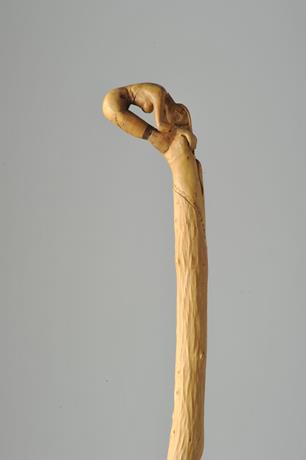 Pomegranate wood – single piece of wood (monoxilo)- carved by hand. The garter is an insert of Labunum wood. On the stalk there is also the head of a predatory gargoil.