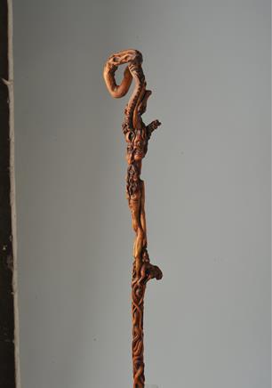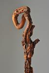 Exceptional natural distortion of the root the runs away from the handle. Miscellany of the rotating satyrs, gargoyle, animals around the central character constituted of the old androgynous satyr . The stalk ends with a composition of tangles ropes.