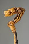 Exceptional natural contortion of the root and rare combination between the wood external alive fiber and the inner dying (heartwood). By yellow/brown contrast was born the idea of the flames that come out of the dragon’ s mouth and becomes the lion.